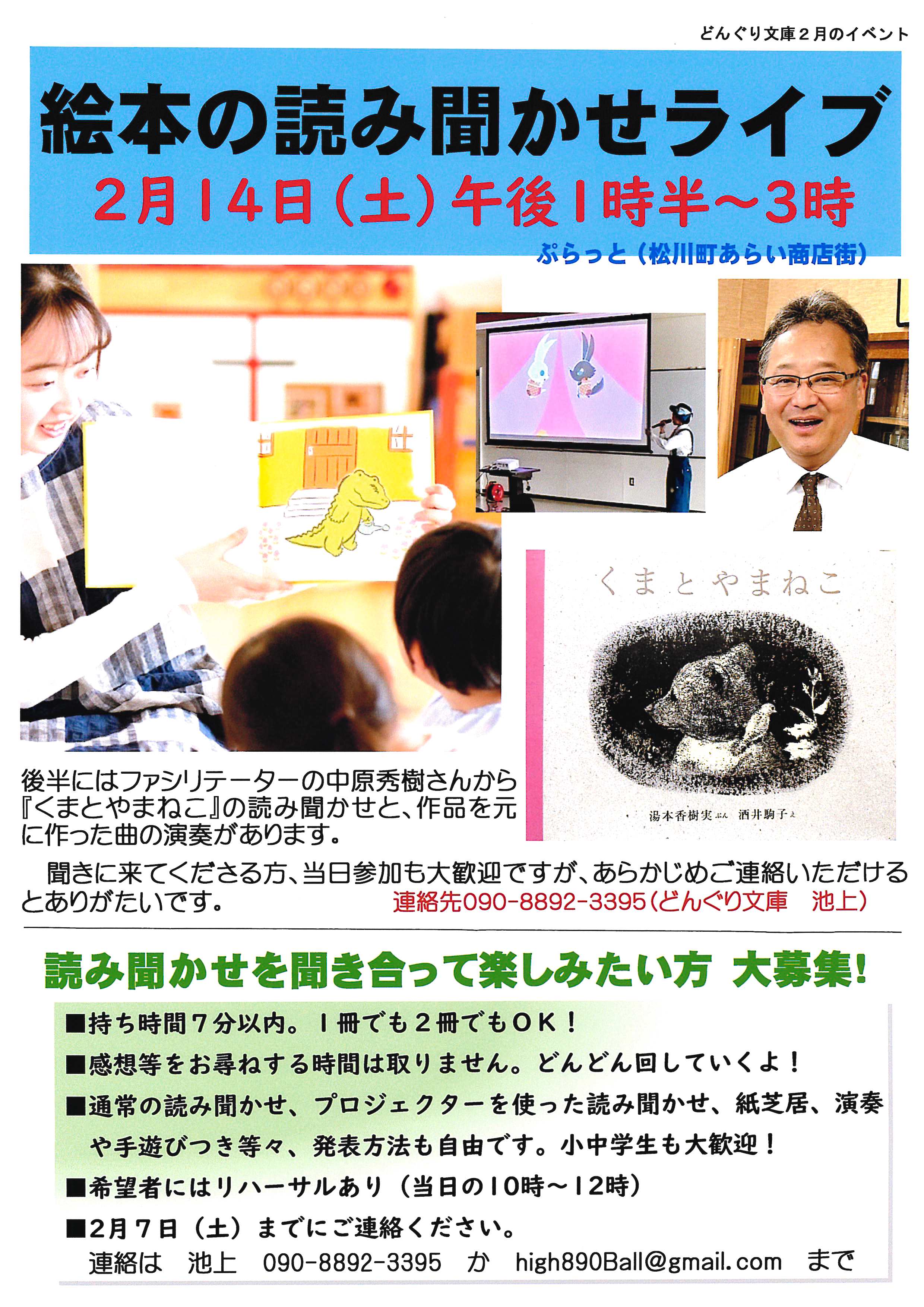 ●どんぐり文庫 絵本の読み聞かせライブ 2月14日(土)NEW