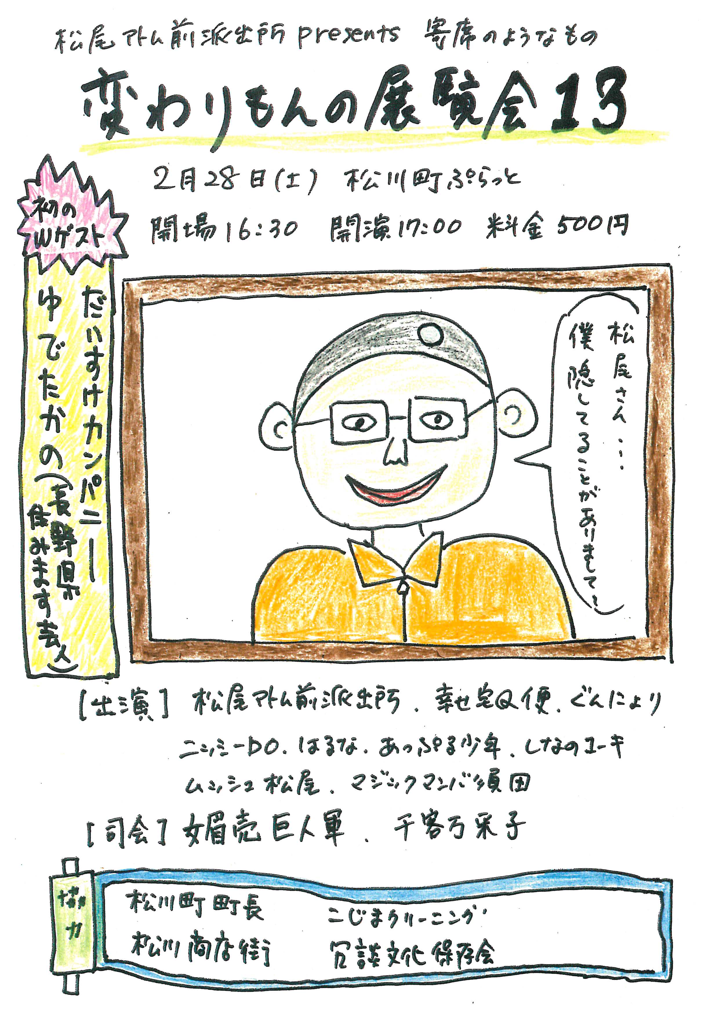 ~恒例の笑いの時間~ 松尾アトム前派出所Presents 寄席のようなもの〇開催日時:2月28日( 土 )開場16:30 開演17:00