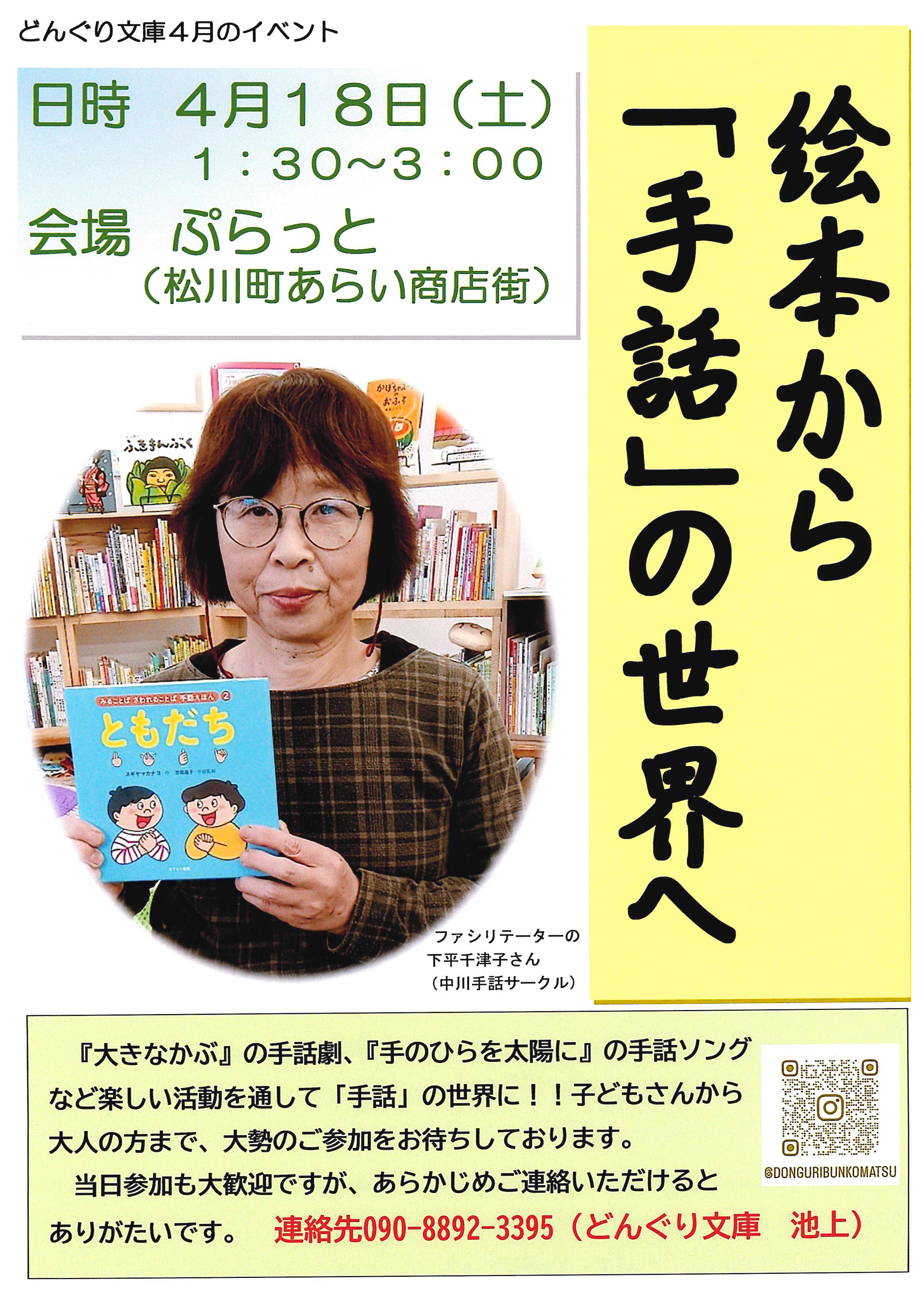 ●どんぐり文庫 絵本から「手話」の世界へ 4月18日(土)NEW