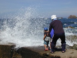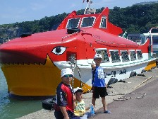 タクシーといっても結構大きな船。30人くらいは乗れそうです。そこに我が家だけ六人貸切で乗船、特等席の採り放題。あっちこっちといろんな景色を家族占めしました。タクシーは速い速い、高速船より先に師崎に到着しました。桟橋に降り立ったときの優越感は格別でした。あ〜、リゾート感満喫の旅行だった。