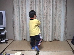 さて我が家のわんぱく天使。先生を見送って部屋に戻ってみると残していったはずのお菓子がない。「お前勝手に食っただろ」「先生たべてったんじゃないの」「…、ふっふっふっカーテンが開けてあったからちゃんと目撃者がいるんだよ。観念しろ」「ひぇ〜」
