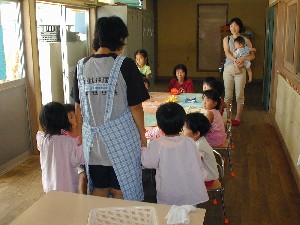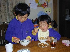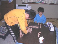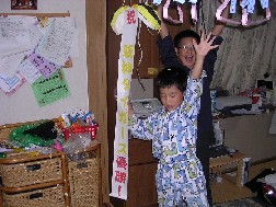 ところで男同士二人きりだとどうしてか会話が弾みません。一杯はいっていればそうでもないのですが、家庭訪問でそれはまずい。お互い「あの〜」とか「え〜と」とか言ってぜんぜん話が進みません。窮した頃、我が家のわんぱく天使がやってきて私の横にちょこんと座るではないですか。「おぉ〜、お前はなんて親孝行な息子なんだ!家庭訪問が終わって先生がお菓子を残していったら全部お前にやるぞぉ〜(うそ)」