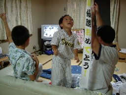 家族全員というと「おや?確か母さんは?」と思われる方もいるかもしれません。もとはGのつく球団のファンだった母さんも、甲子園の興奮と、六甲おろしの洗脳で今ではすっかりタイガースファンになってしまいました。なので家中で大騒ぎになっているわけです。